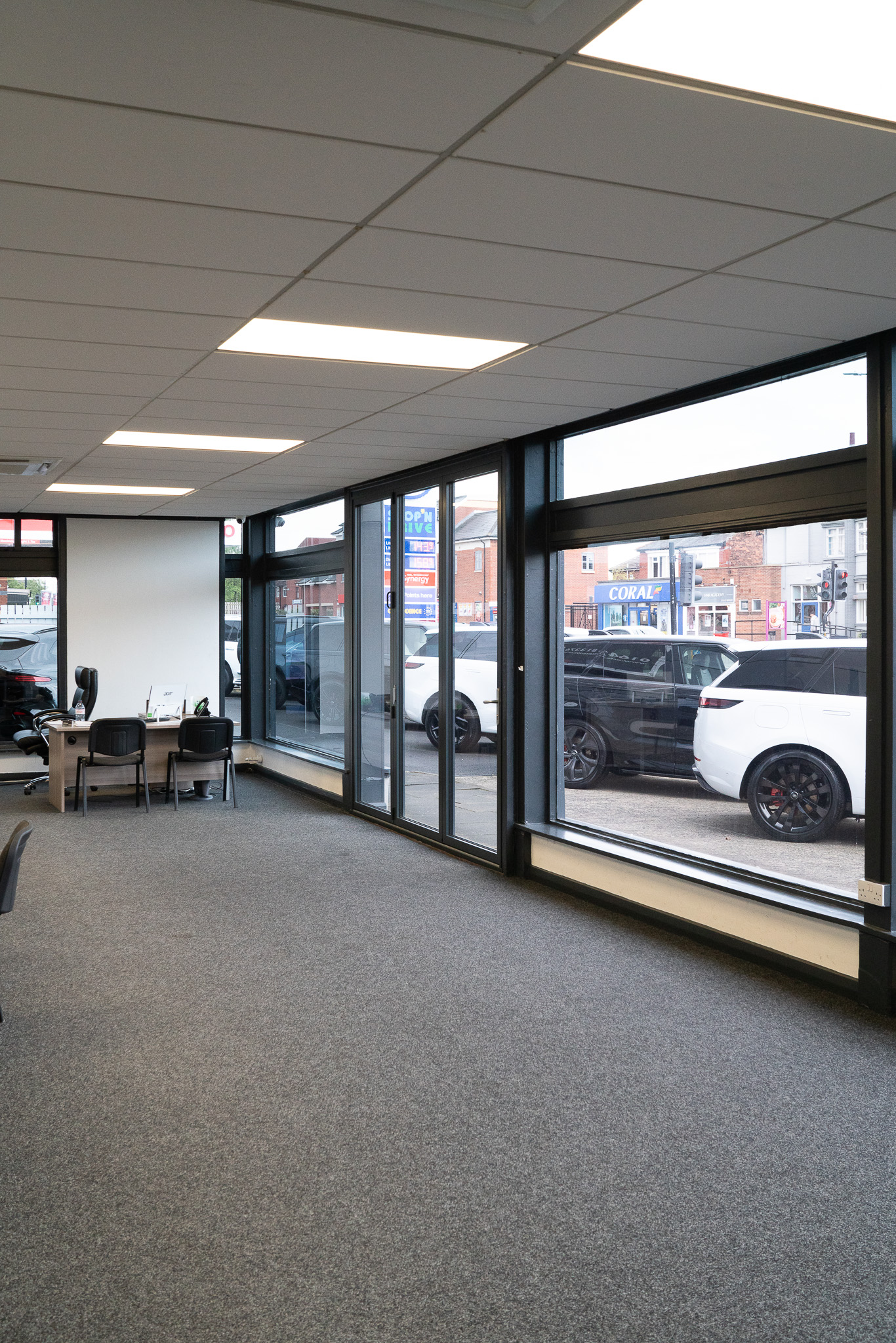 At Riverside Car Sales, we undertook a commercial project that required a comprehensive approach to revamp the storefront. We installed a new shop front and advanced commercial glazing to enhance the facade, paired with a modern shop entrance that significantly boosted the curb appeal and functionality of the business premises.